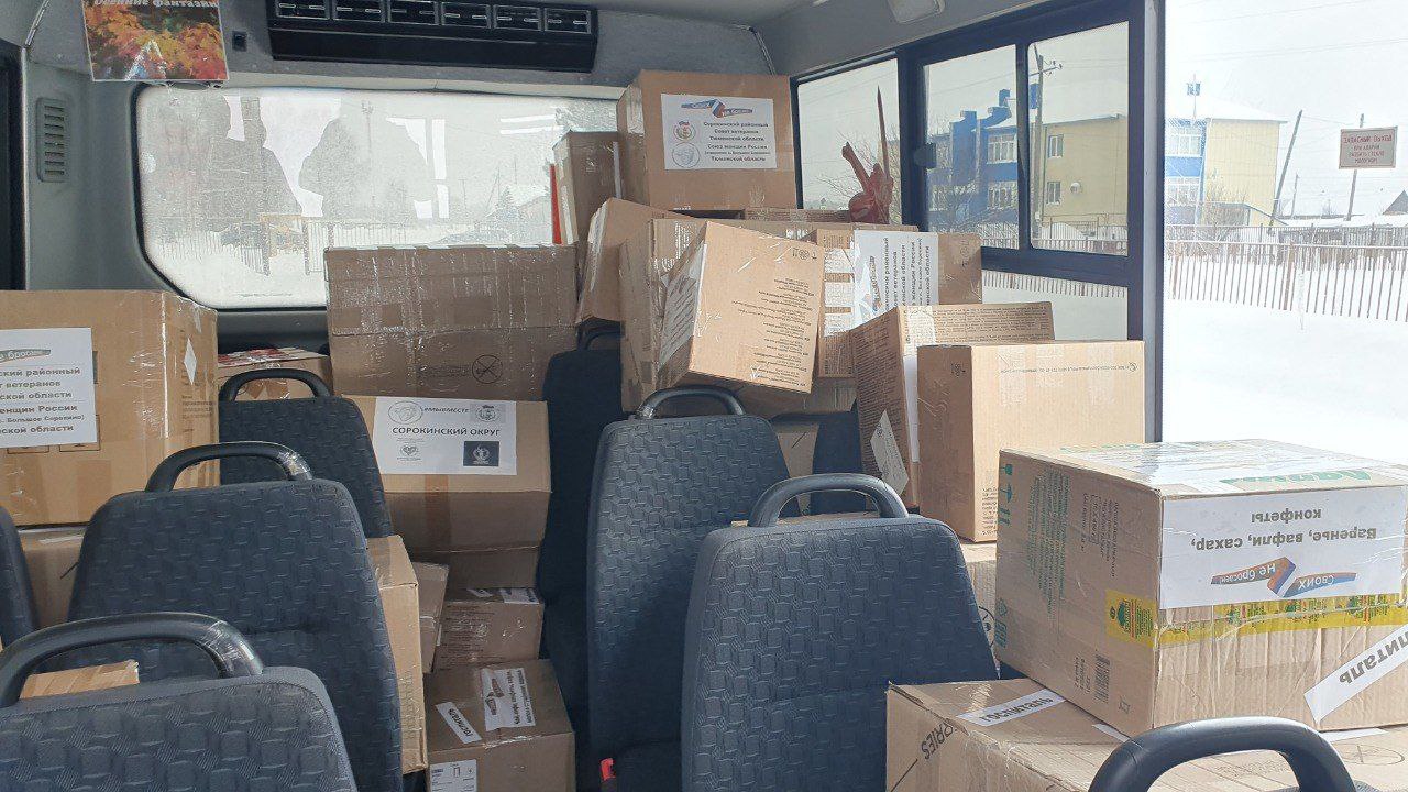В преддверии Дня защитника Отечества посылки для военнослужащих собрали и активистки женсовета Сорокинского округа. При поддержке членов местного совета ветеранов они собрали "машину добра". Всего получилось больше 50 коробок с самым необходимым. Это тёплые одеяла, подушки, пледы, постельное белье, одежда, сладости, домашние заготовки.