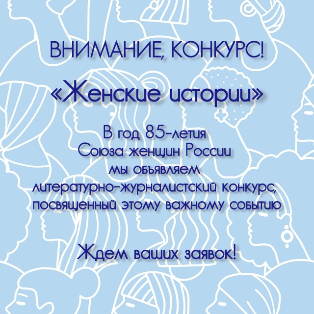 - «85 лет в строю». Принимаются работы любого жанра, которые наиболее полно, ярко и творчески раскрывают историю, значение и влияние Союза женщин России на жизнь страны.