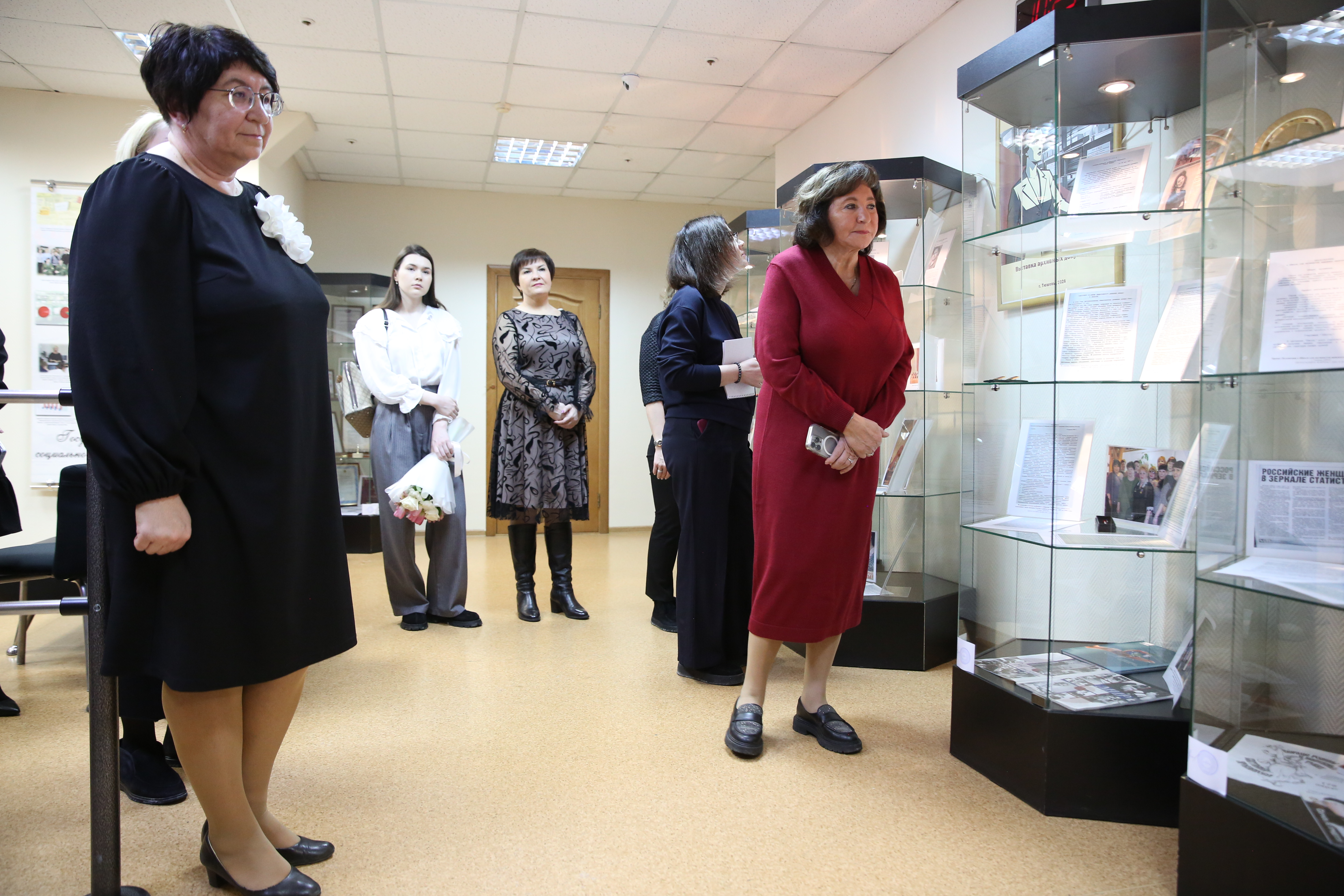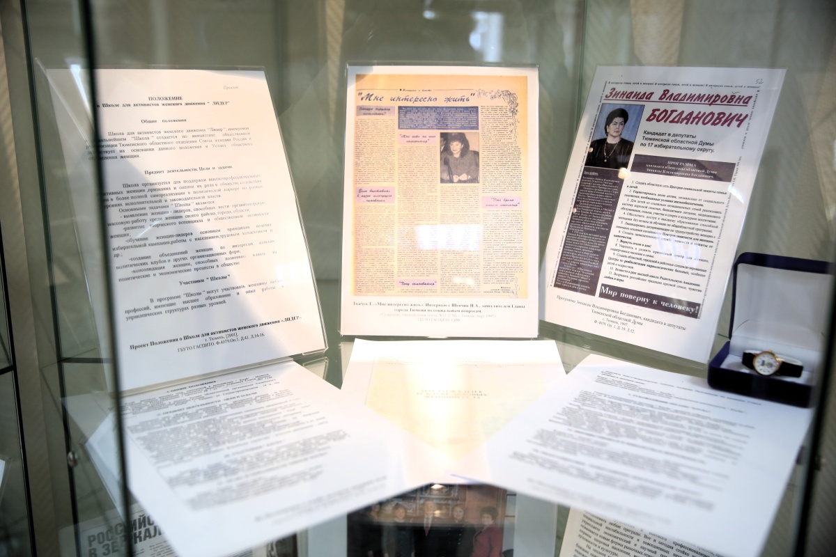 Первыми её посетили члены Тюменского регионального отделения Союза женщин России во главе с председателем Натальей Шевчик. Исторические документы, собранные в экспозиции, отражают роль женщины в разные годы.
