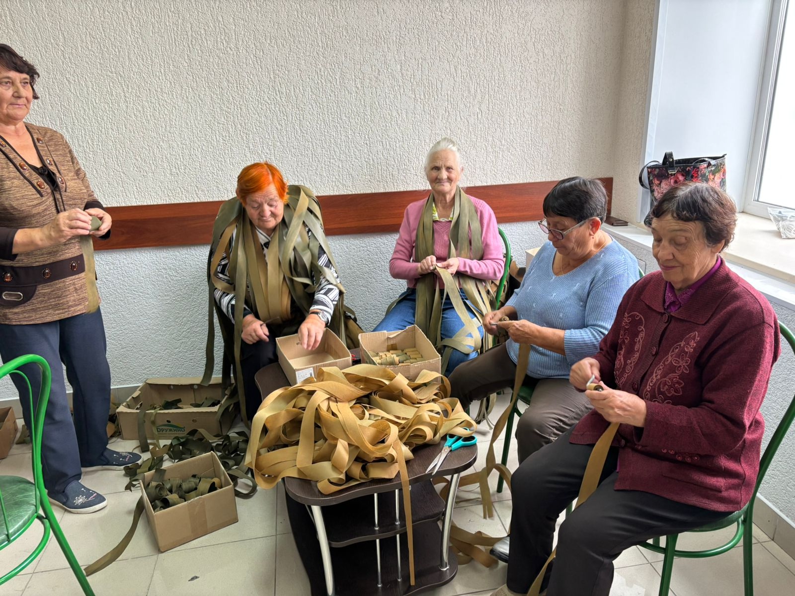 Члены Сладковского женсовета совместно с "серебряными" волонтерами продолжают поддерживать участников спецоперации. С 2023 года неравнодушные жители района занимаются плетением маскировочных сетей. Работа идет в ежедневном режиме. Сейчас волонтеры продолжают работу над 140-й масксетью.